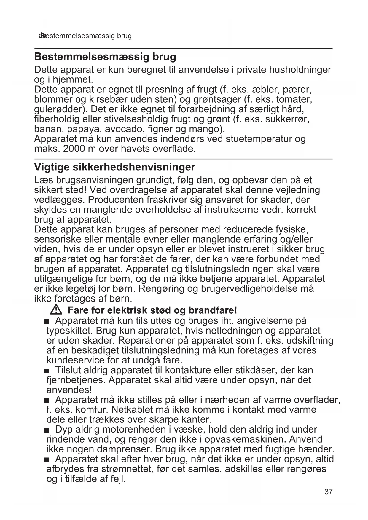 ■ Der må kun forarbejdes modne og ikke frosne frugter og