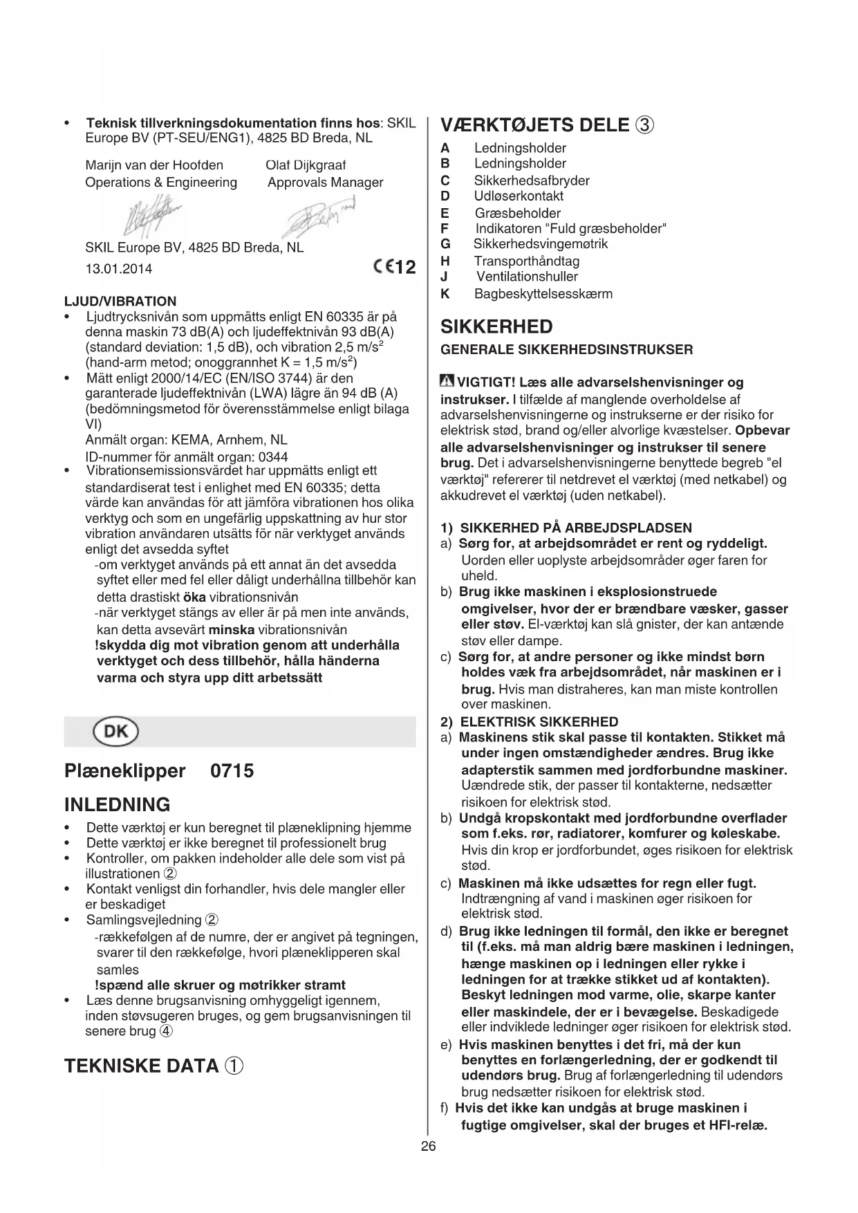 Téléchargez la notice de votre Plæneklipper au format PDF gratuitement ! Retrouvez votre notice 0715 AA - SKIL et reprennez votre appareil électronique en main. Sur cette page sont publiés tous les documents nécessaires à l'utilisation de votre appareil 0715 AA de la marque SKIL.