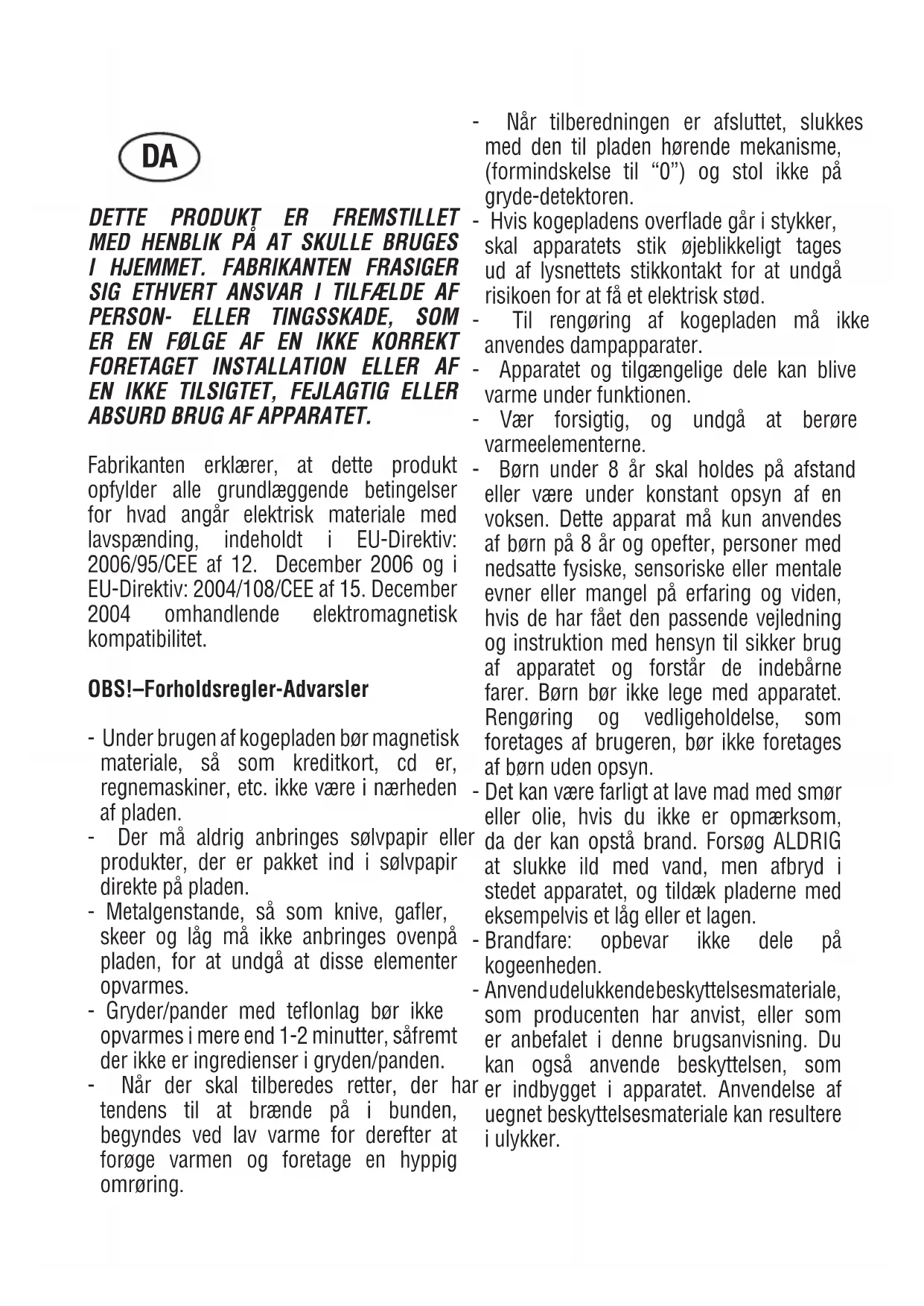 - Til rengøring af kogepladen må ikke