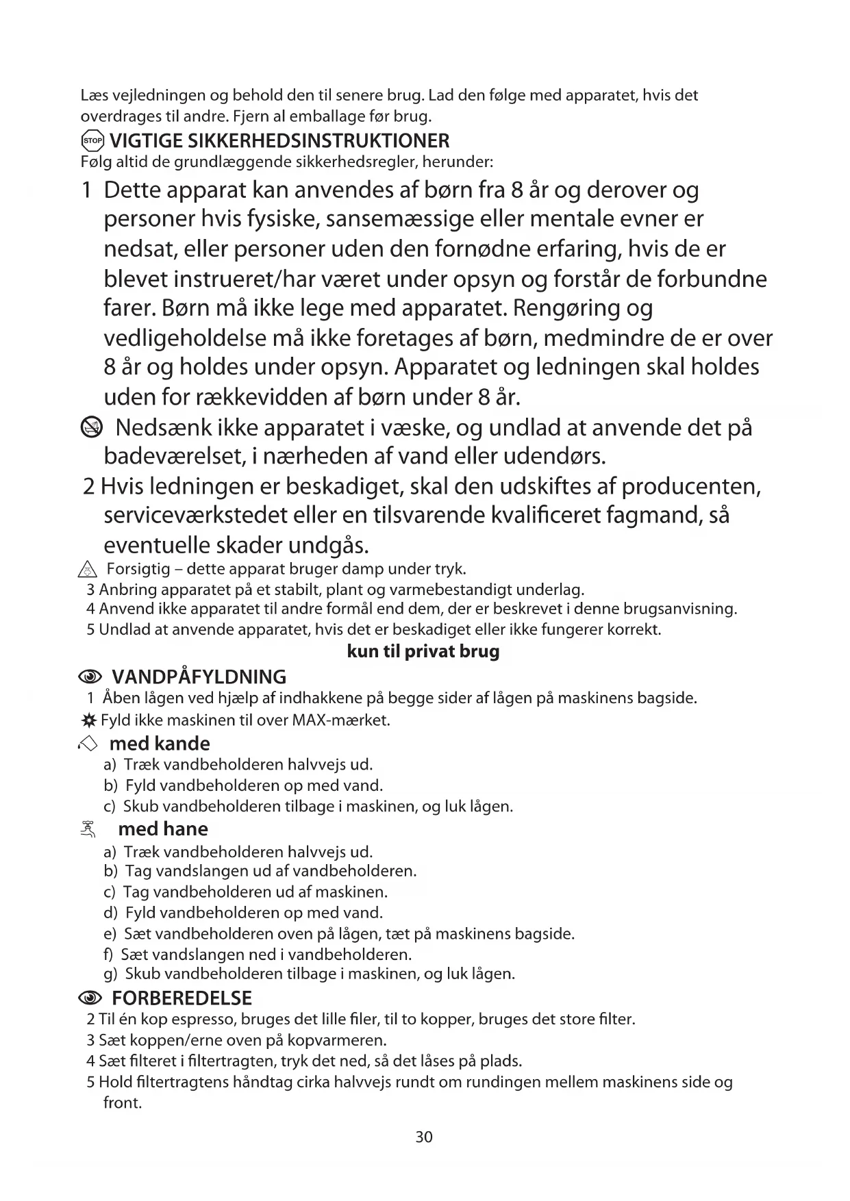 Læs vejledningen og behold den til senere brug. Lad den følge med apparatet, hvis det