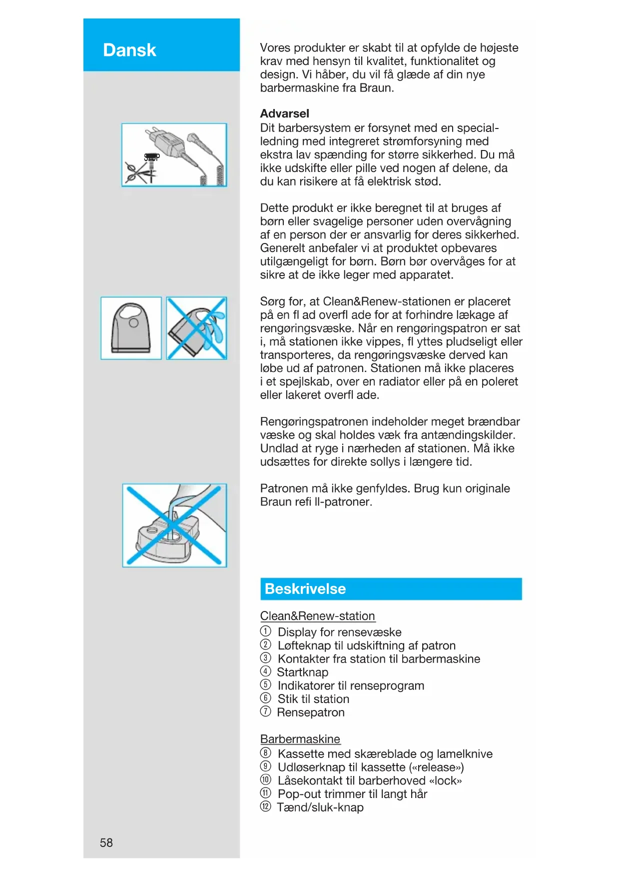 hvor originale Braun reservedele ikke er anvendt.