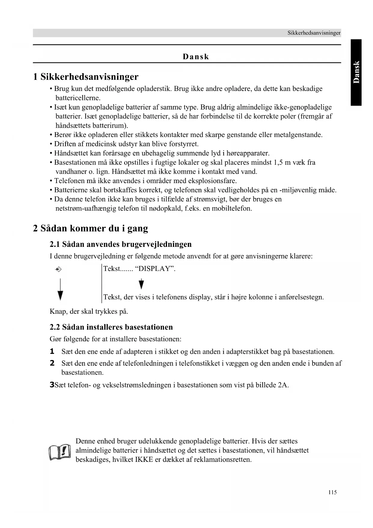 Sikkerhedsanvisninger Dansk 1 Sikkerhedsanvisninger