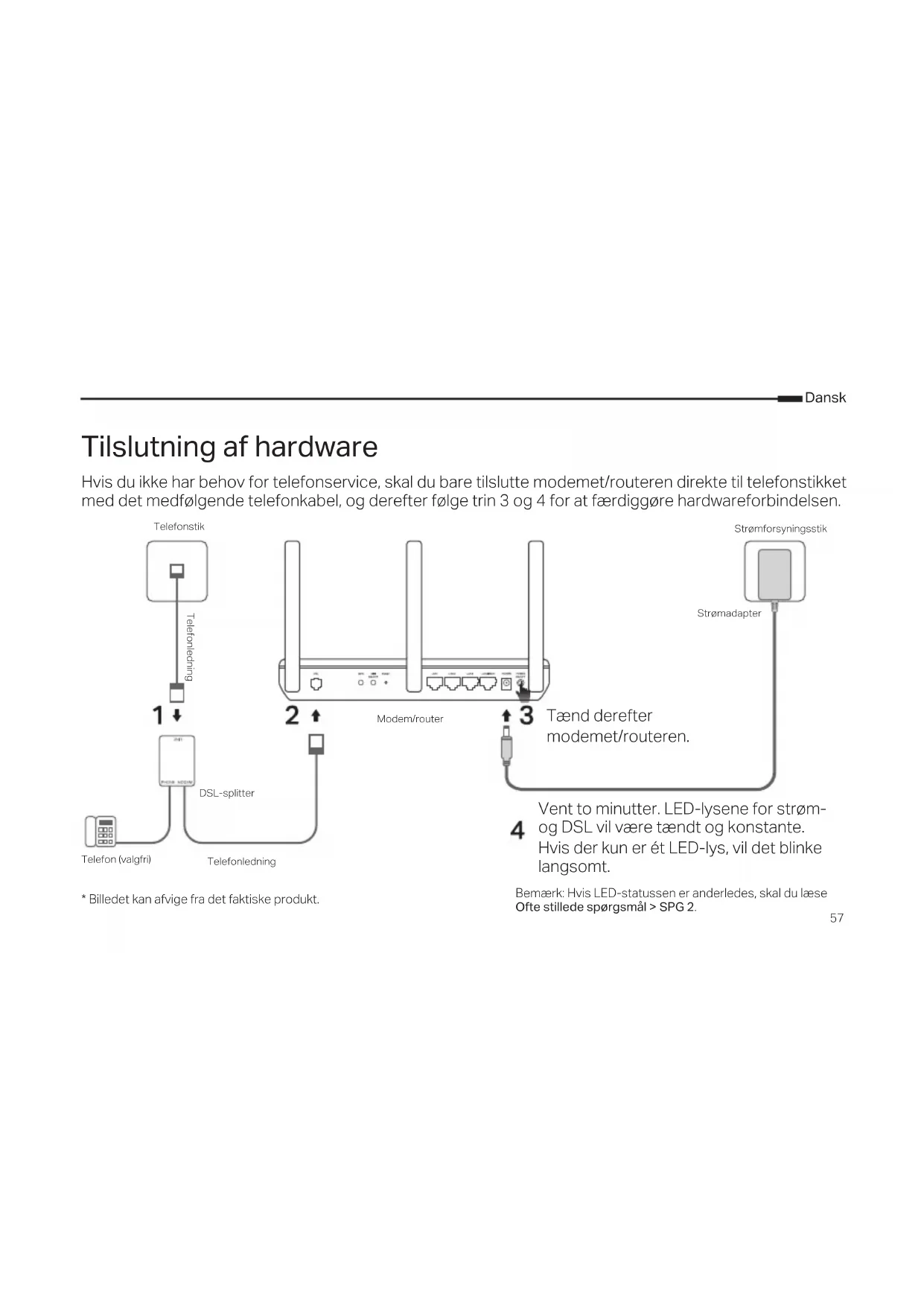 Hvis du ikke har behov for telefonservice, skal du bare tilslutte modemet/routeren direkte til telefonstikket