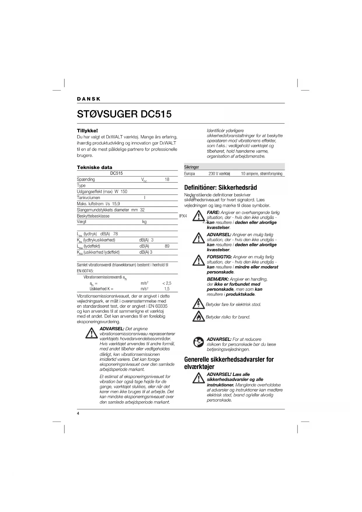 Download vejledningen til din Støvsuger i PDF-format gratis! Find din vejledning DC515 - DEWALT og tag din elektroniske enhed tilbage i hånden. På denne side er alle dokumenter nødvendige for brugen af din enhed offentliggjort. DC515 af mærket DEWALT.