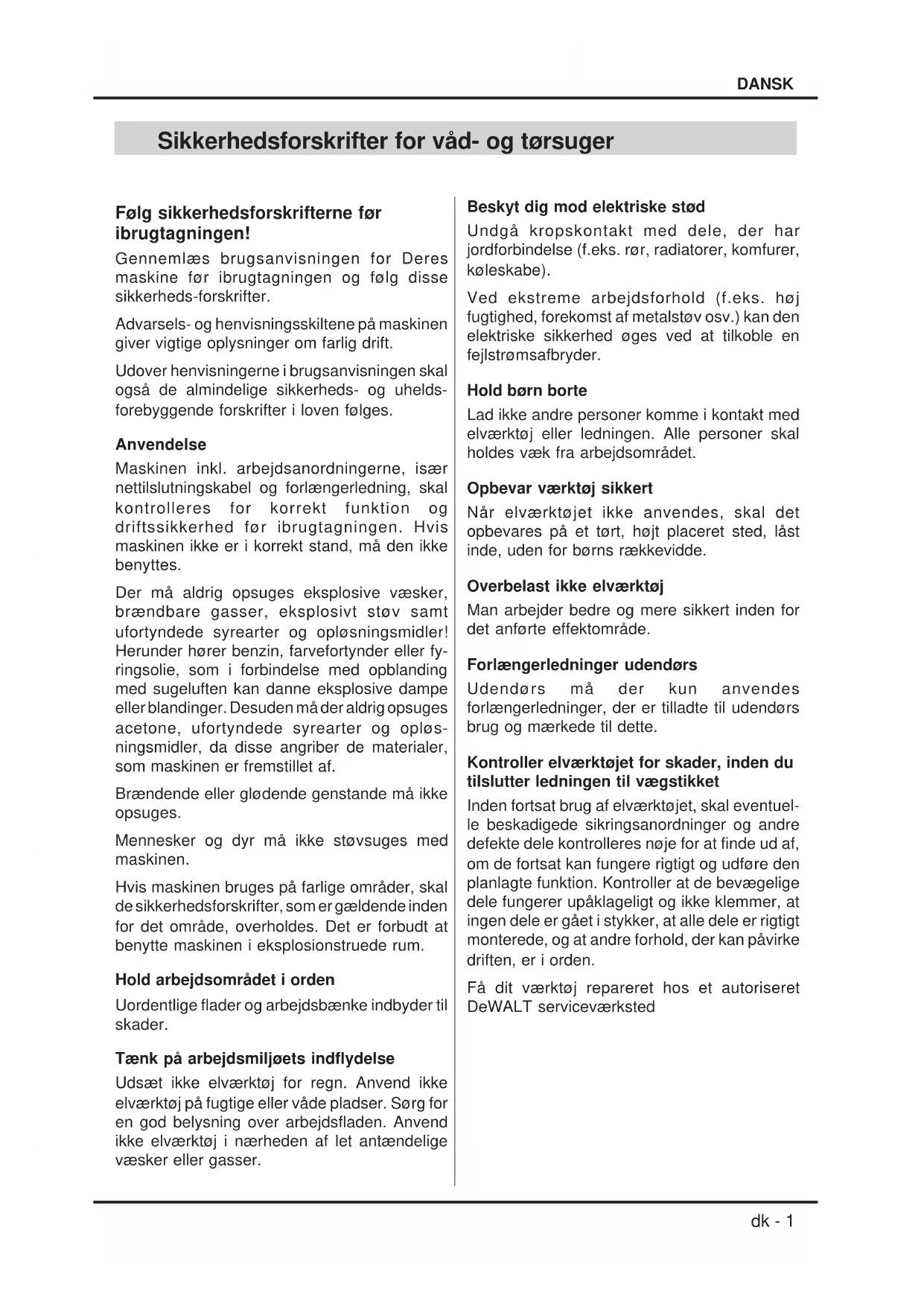 DW793 - Støvsuger DEWALT - Notice d'utilisation et mode d'emploi gratuit