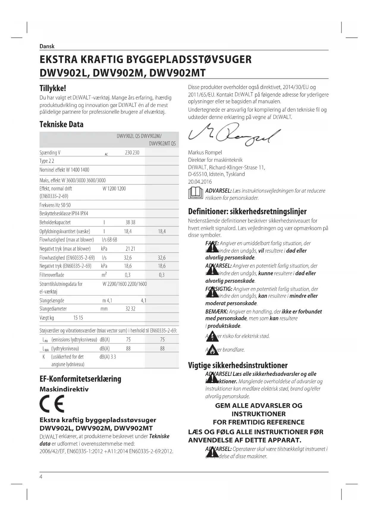 Find enhedens vejledning gratis DWV902L DEWALT i PDF-format.