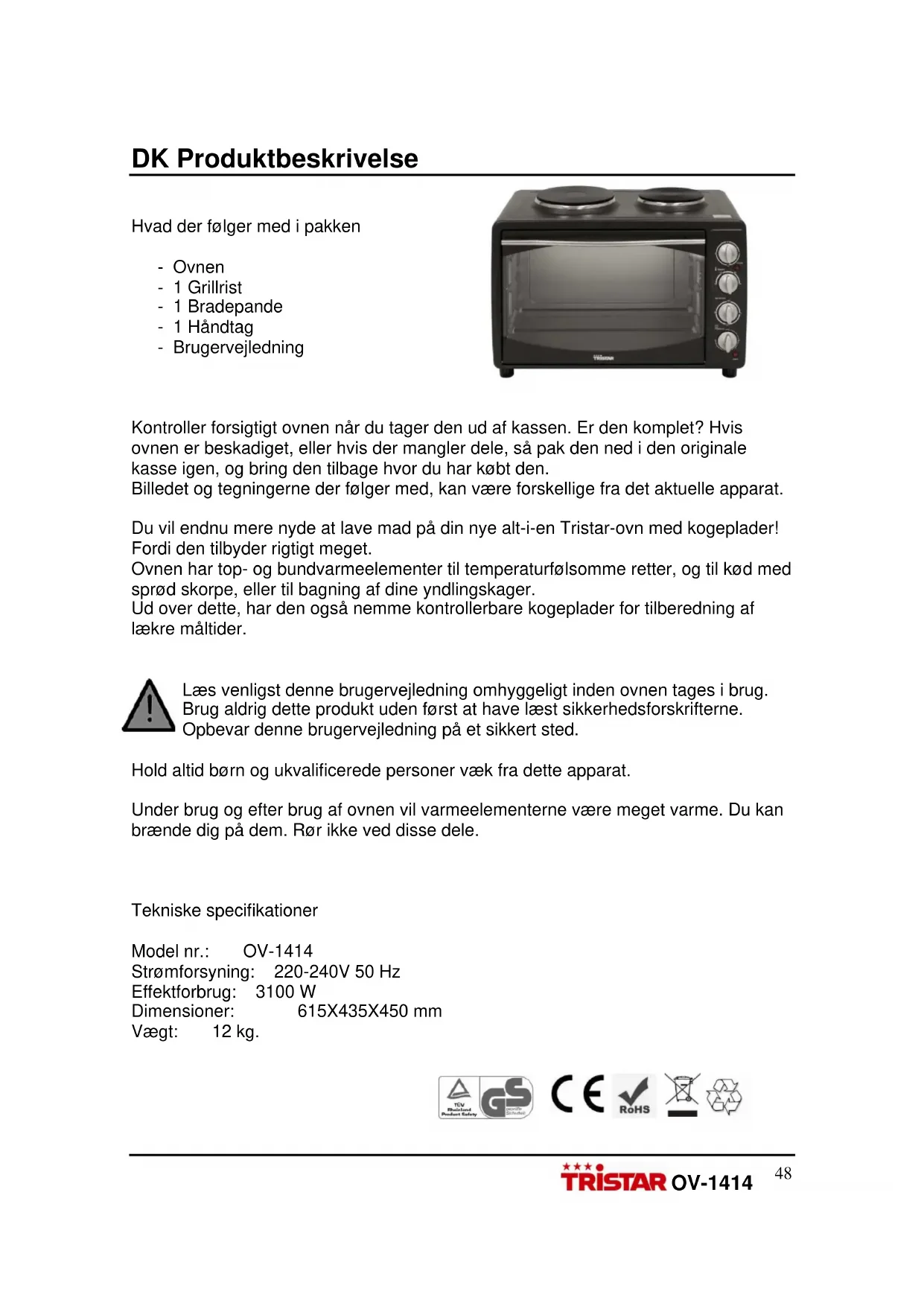 OV1414 - Komfur TRISTAR - Notice d'utilisation et mode d'emploi gratuit