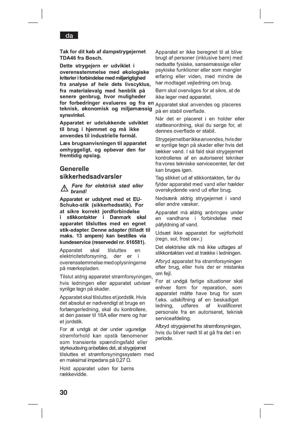 BRUGSANVISNING TDA4630 sensixx B3 secure Steam BOSCH