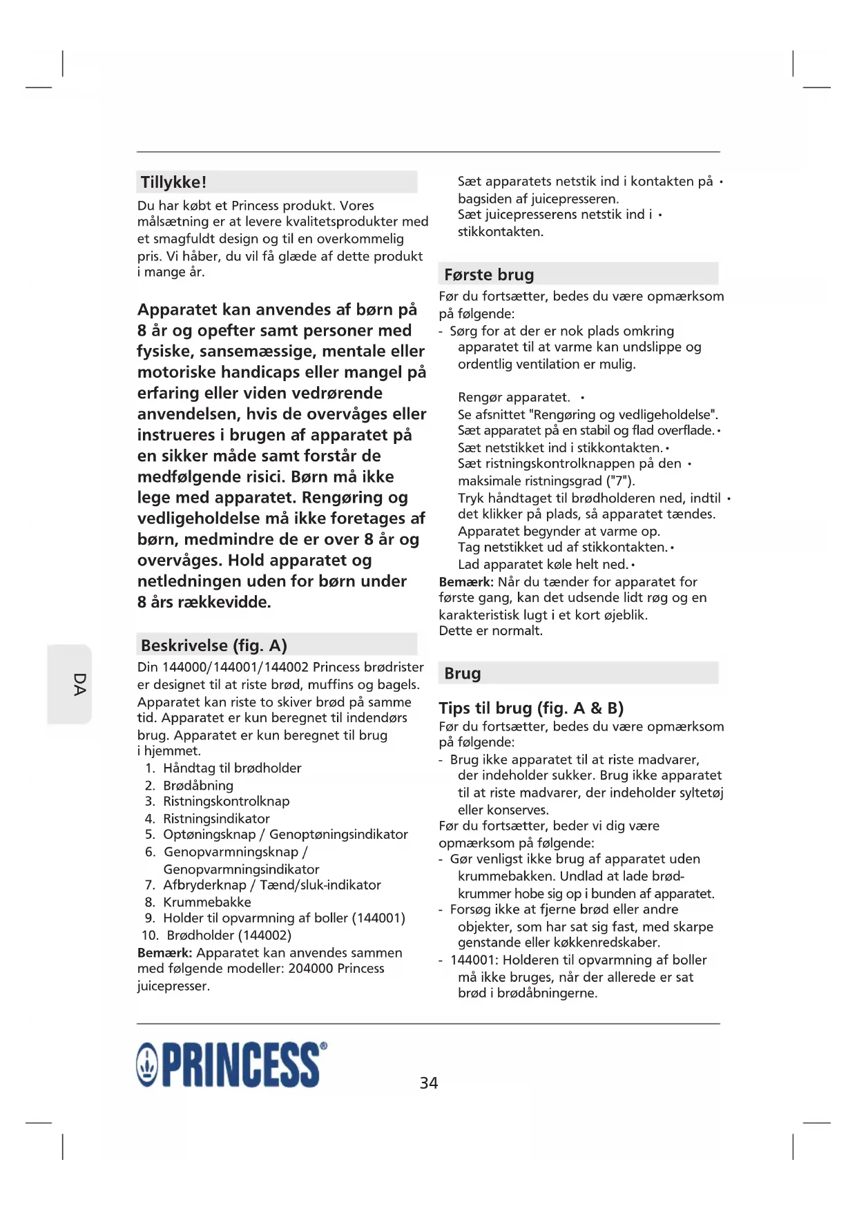 Compact4All Toaster 144000 - Brødrister PRINCESS - Notice d'utilisation et mode d'emploi gratuit