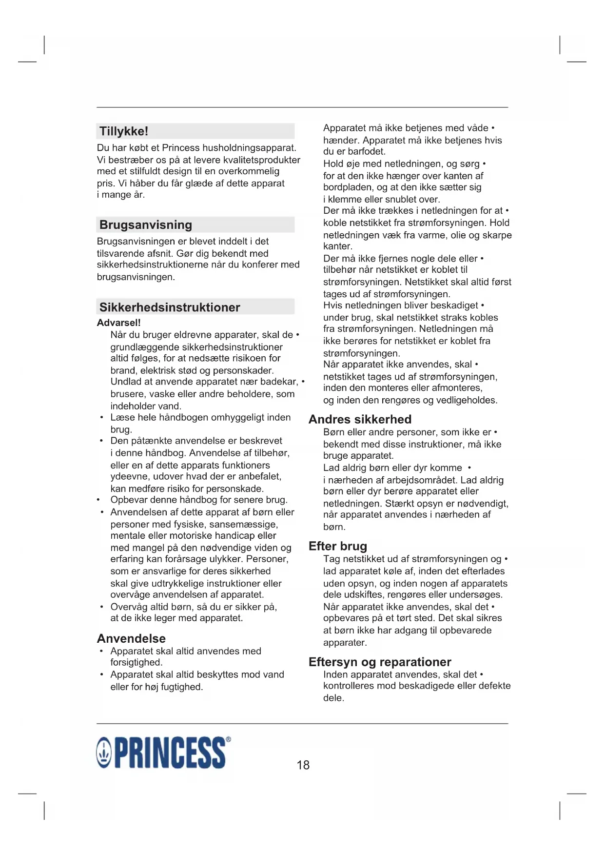 Download vejledningen til din Grill i PDF-format gratis! Find din vejledning Table Grill BBQ XXL 112325 - PRINCESS og tag din elektroniske enhed tilbage i hånden. På denne side er alle dokumenter nødvendige for brugen af din enhed offentliggjort. Table Grill BBQ XXL 112325 af mærket PRINCESS.