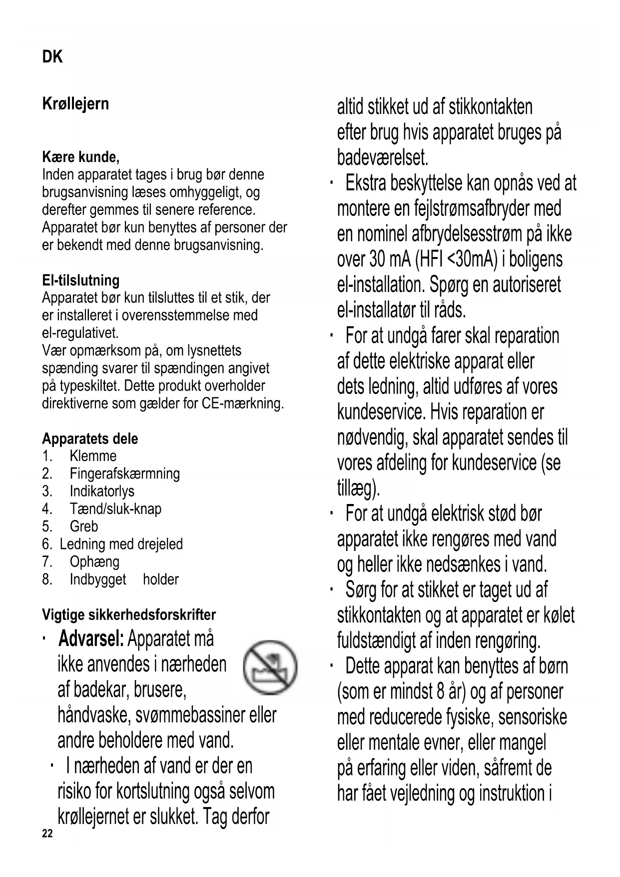 ∙ Sørg for at krøllejernets varme dele ikke