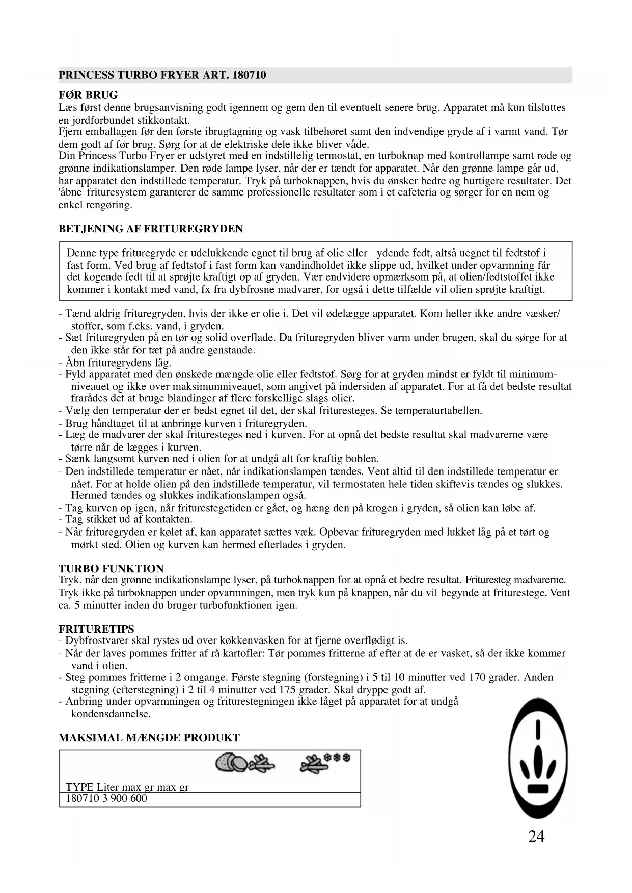 BRUGSANVISNING Turbo Fryer PRINCESS