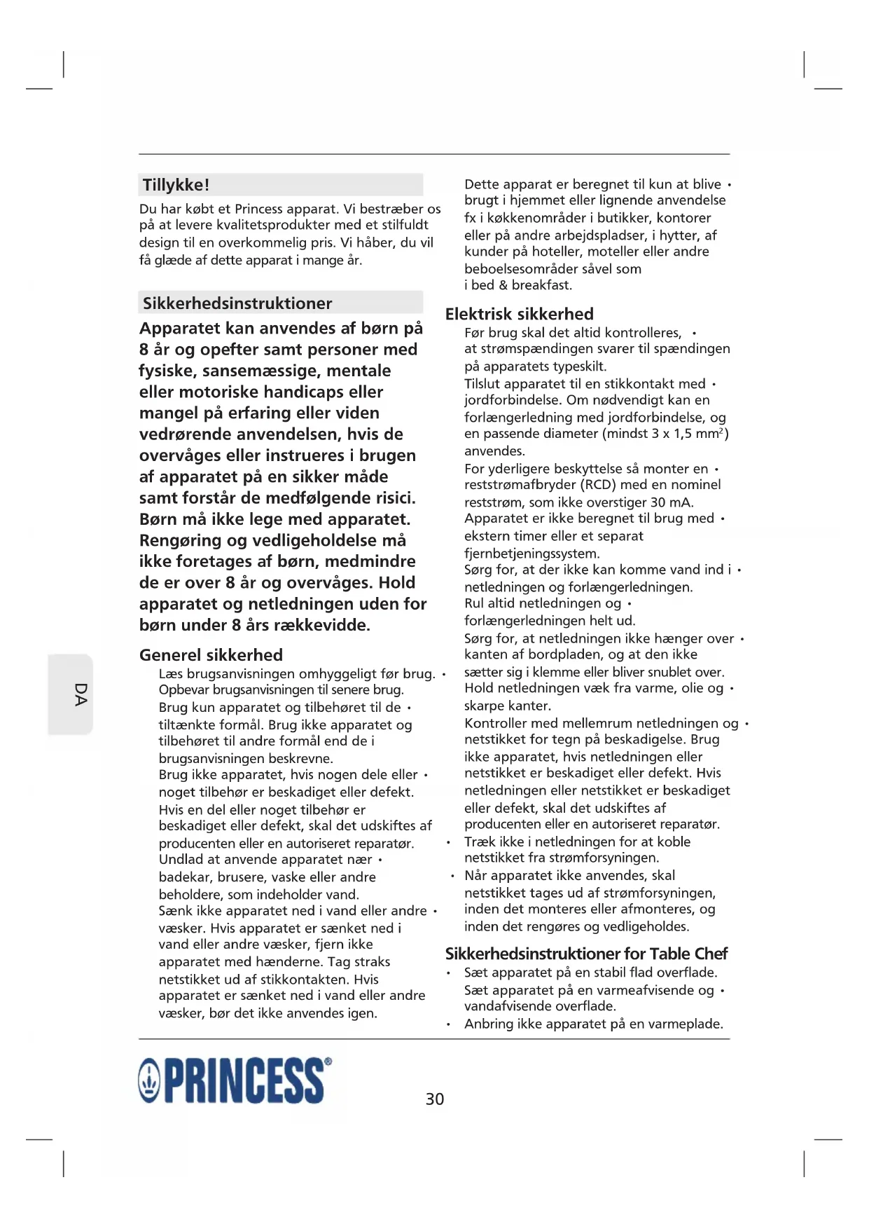 Du har købt et Princess apparat. Vi bestræber os