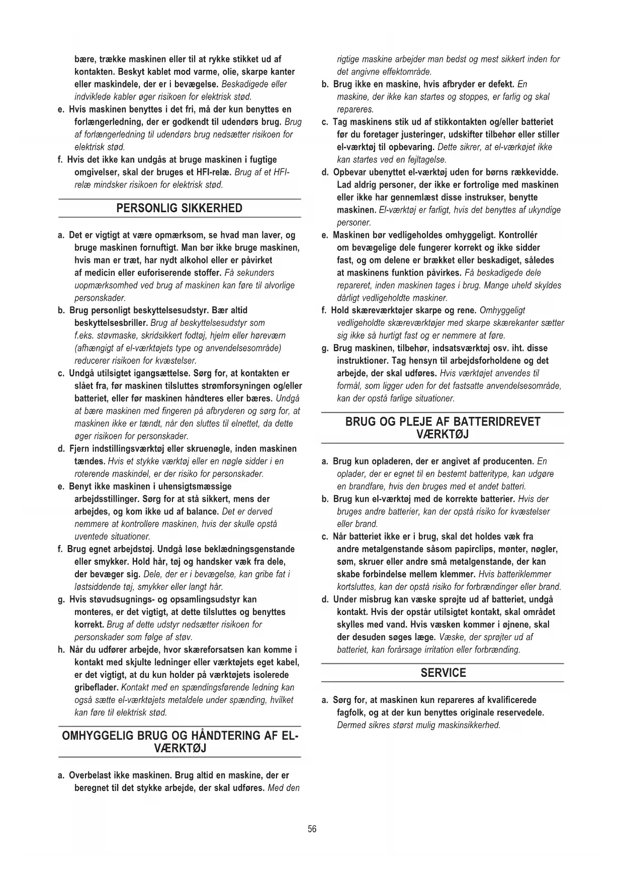 f. Hvis det ikke kan undgås at bruge maskinen i fugtige
