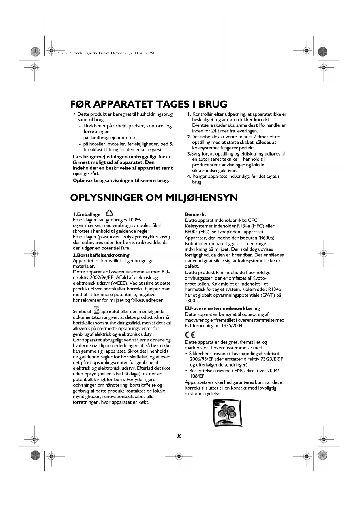 Dette apparat indeholder ikke CFC.