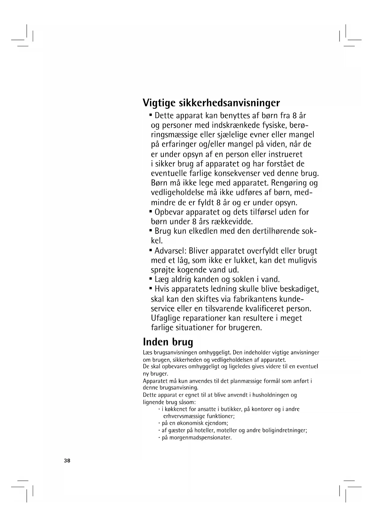 ▪ Læg aldrig kanden og soklen i vand.