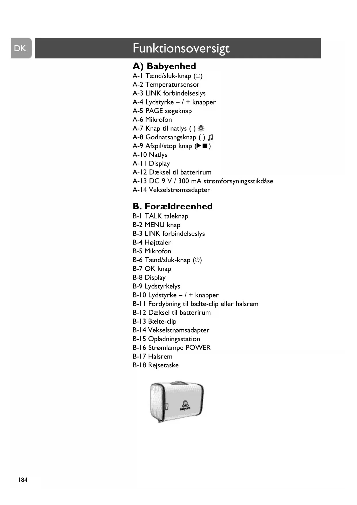 – 1 x vekselstrømsadapter DC 9V / 300 mA til babyenheden