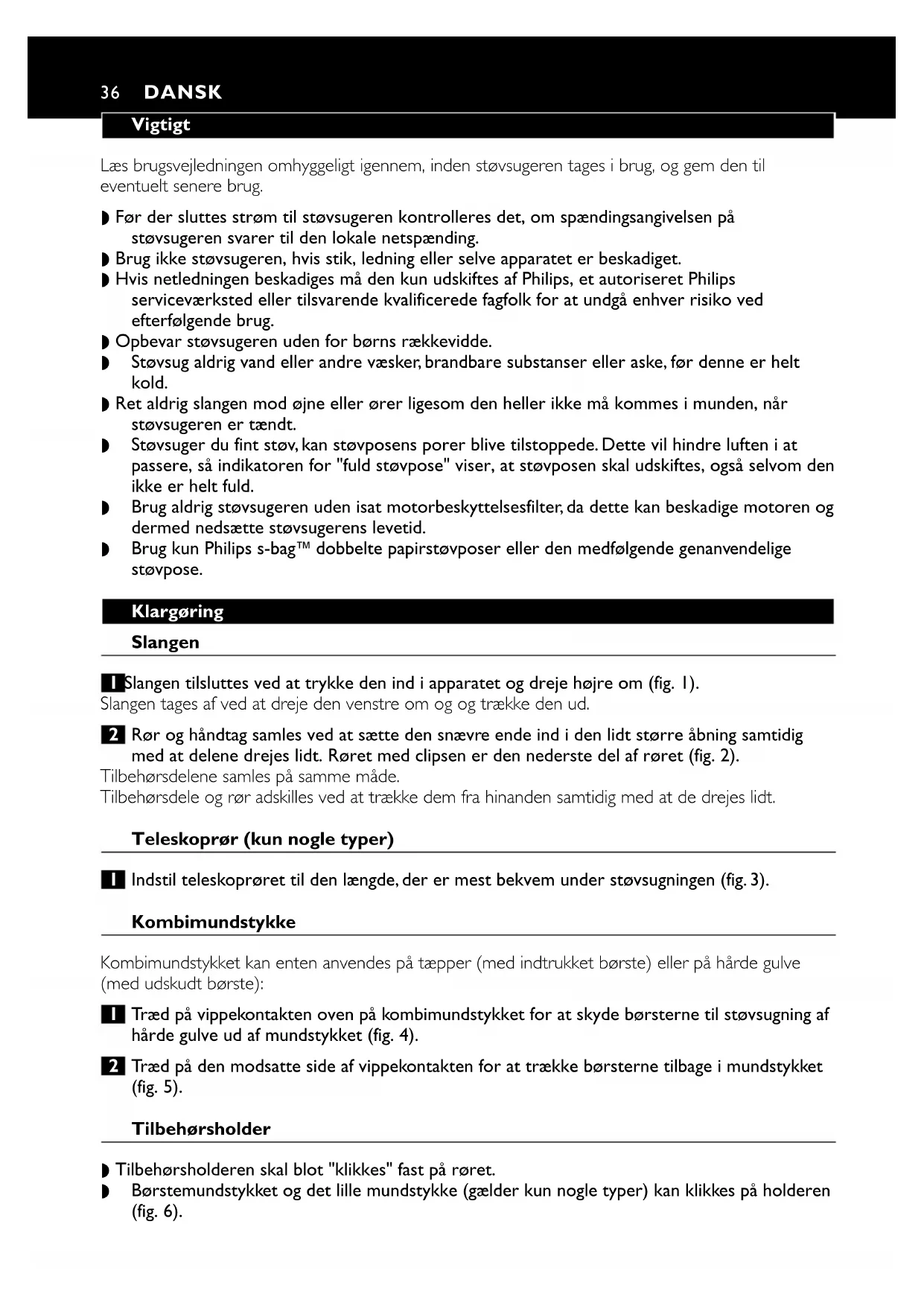 ◗ Brug kun Philips s-bag` dobbelte papirstøvposer eller den medfølgende genanvendelige