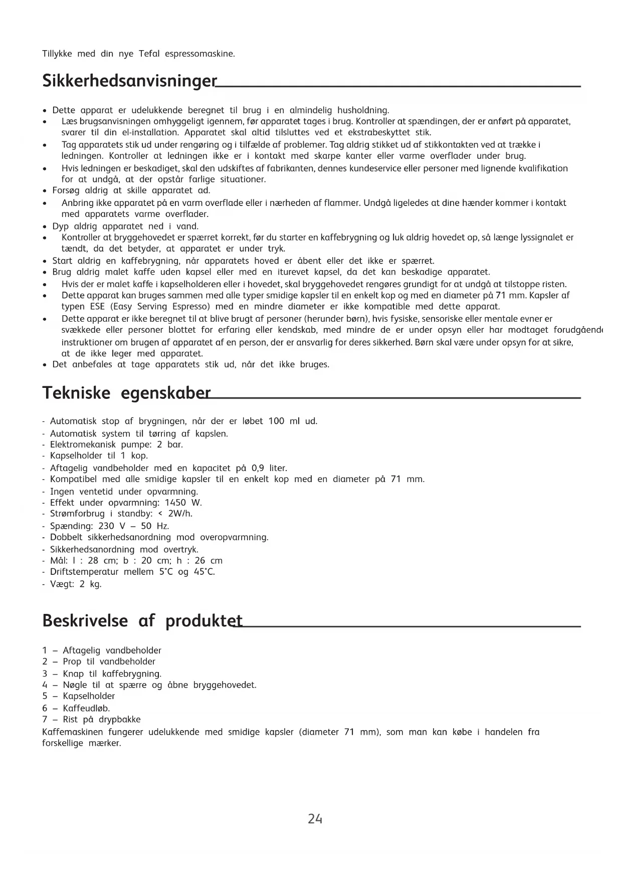 cafetie?re Direct serve CW 100 TEFAL.qxd:Cafet Tefal Express 01_FR. qxd 20/03/09 11:54 Page 23Tillykke med din nye Tefal espressomaskine.