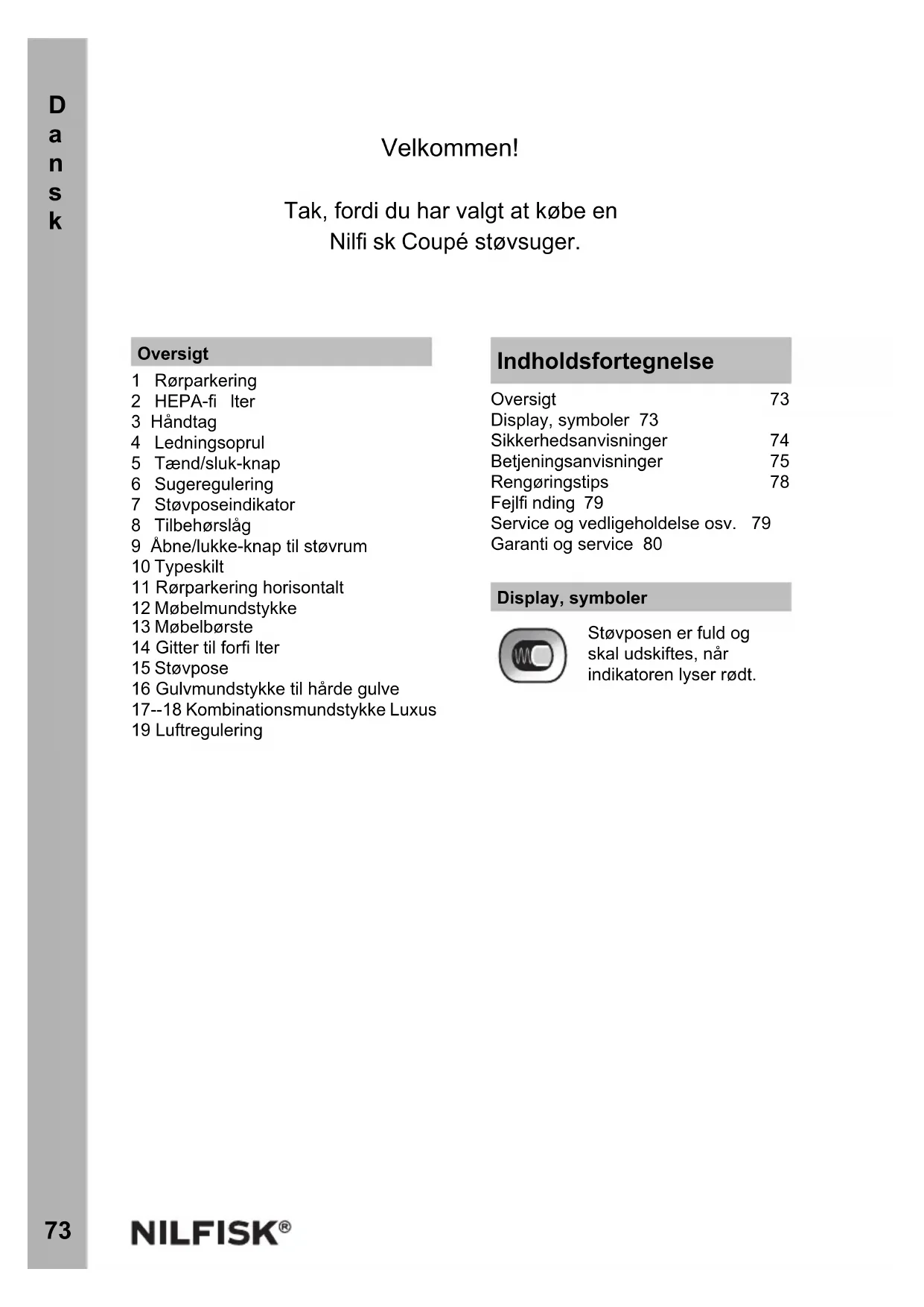 Find enhedens vejledning gratis Coupe Special NILFISK i PDF-format.