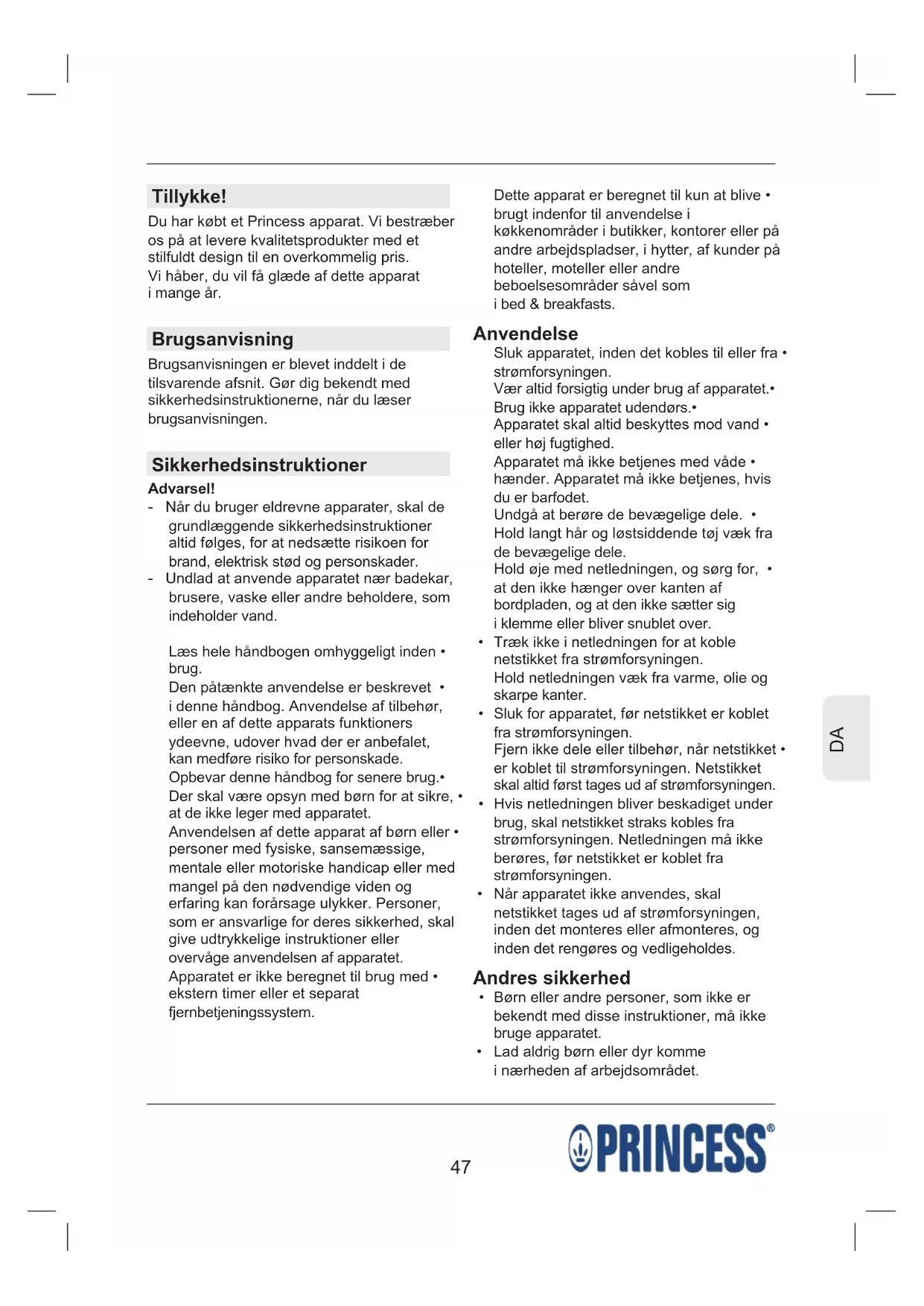 Find enhedens vejledning gratis 332771 PRINCESS i PDF-format.