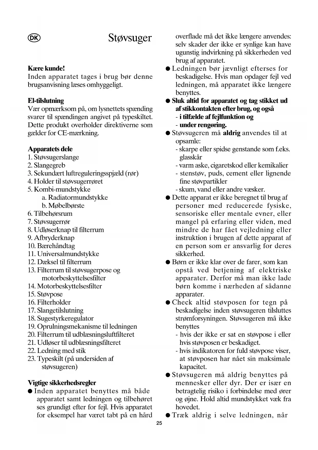 ● Støvsugeren må aldrig benyttes på