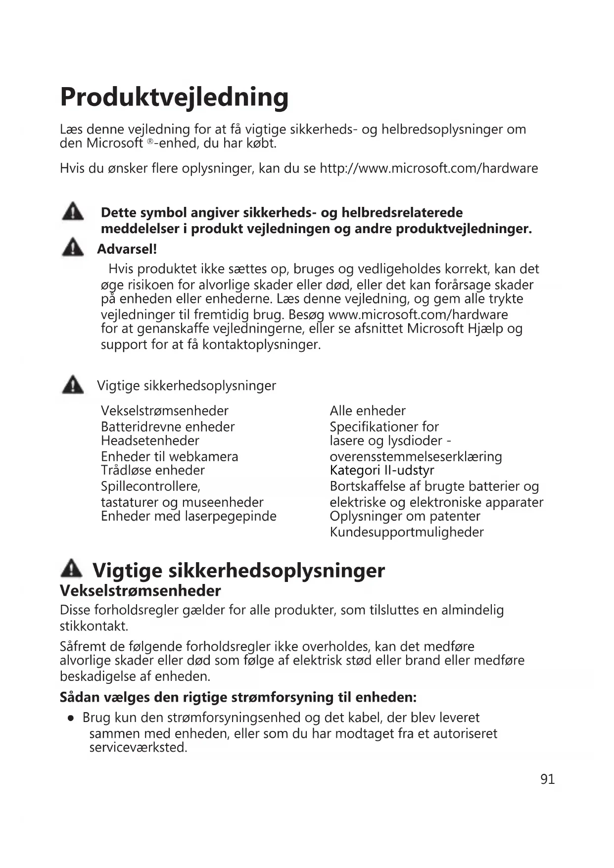 vejledninger til fremtidig brug. Besøg www.microsoft.com/hardware