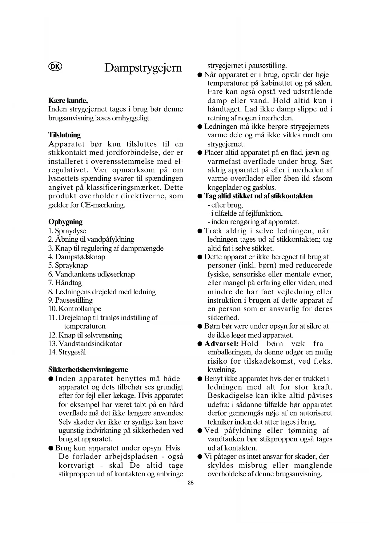 brugsanvisning læses omhyggeligt.