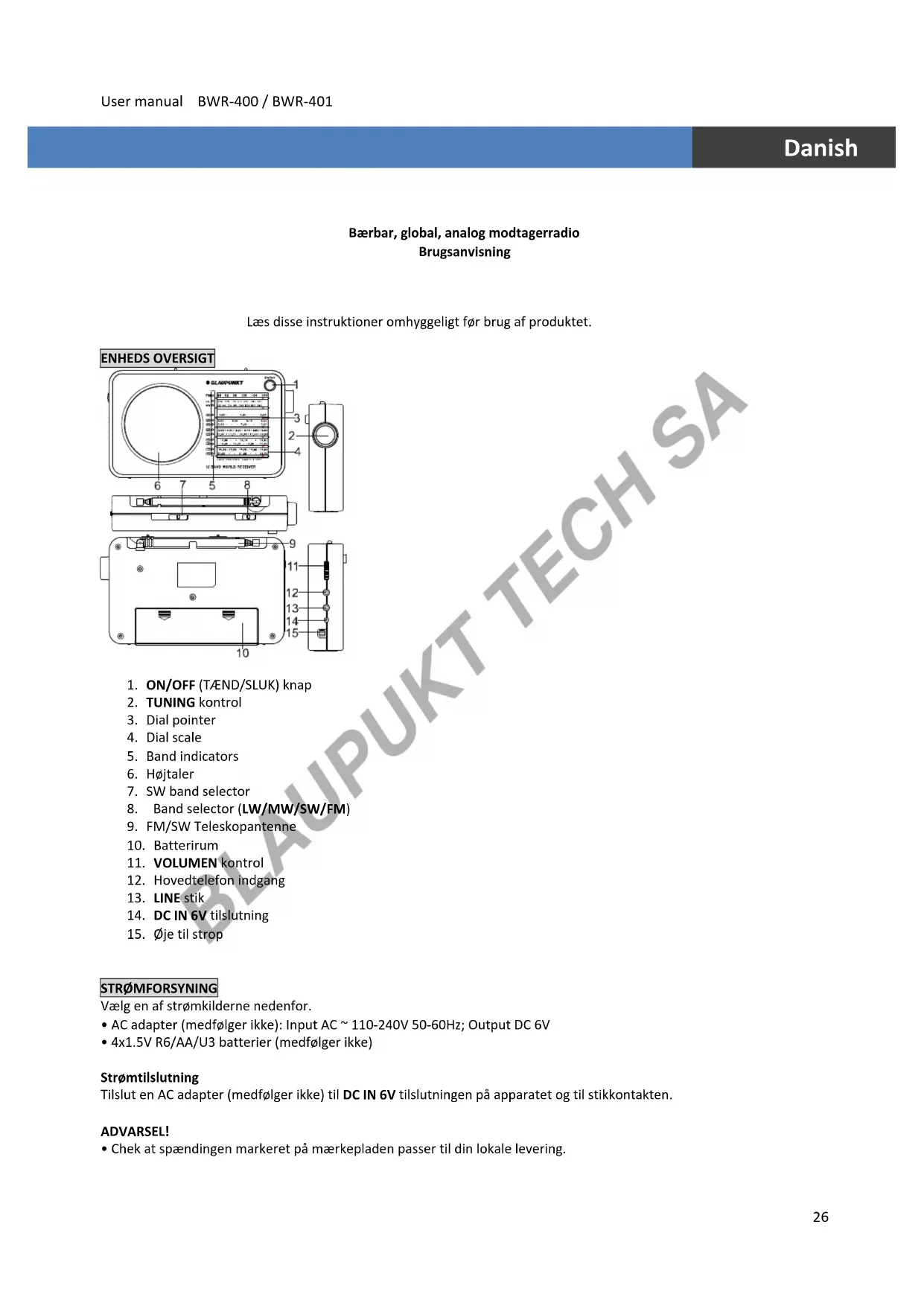 BRUGSANVISNING BWR400 BLAUPUNKT