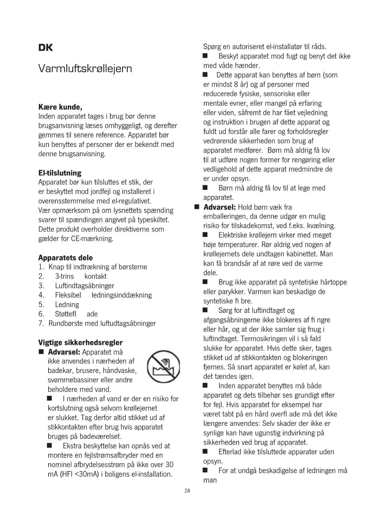 24- aldrig bøje eller knække ledningen, især
