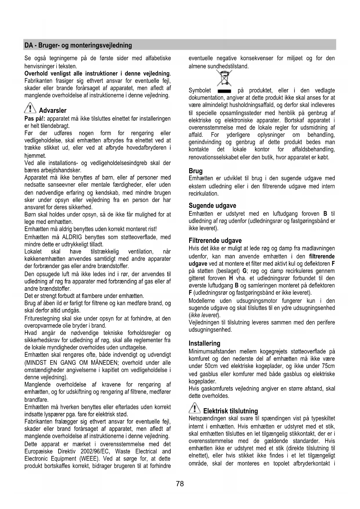 af apparatet og udskiftning af filtrene medfører brandfare. Der