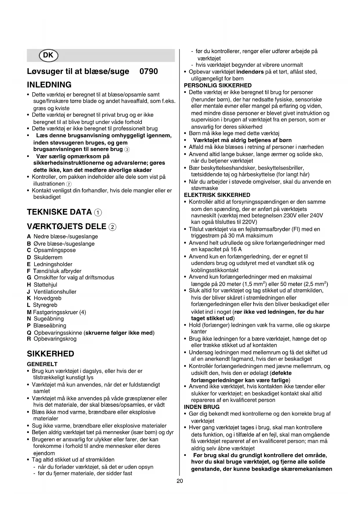 • Dette værktøj er beregnet til at blæse/opsamle samt