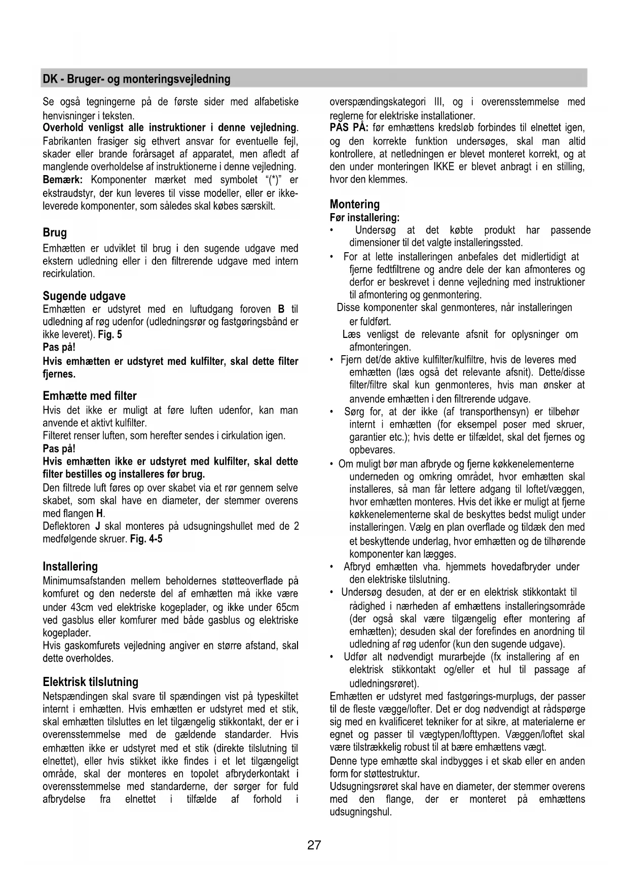 Deflektoren J skal monteres på udsugningshullet med de 2
