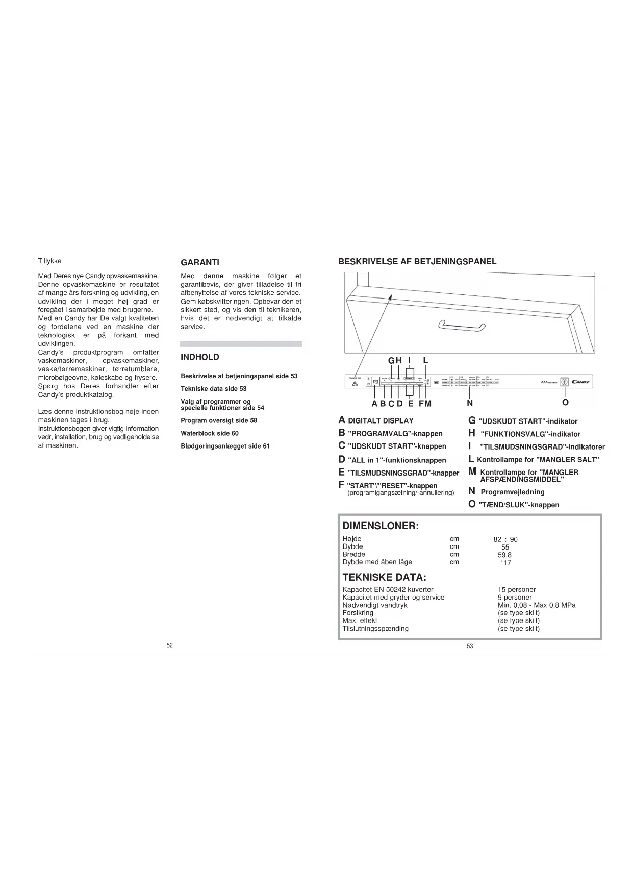 INDHOLD Beskrivelse af betjeningspanel side 53