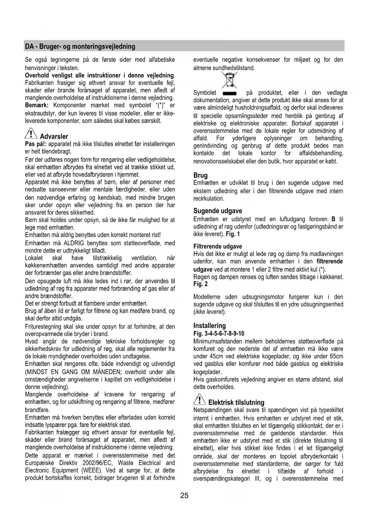 af apparatet og udskiftning af filtrene medfører brandfare. Der