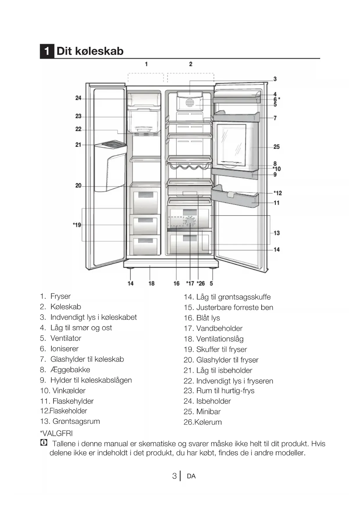 26.Kølerum *VALGFRI C Tallene i denne manual er skematiske og svarer måske ikke helt til dit produkt. Hvis delene ikke er indeholdt i det produkt, du har købt, findes de i andre modeller. 2182591318711*125414352320*192421226**1014*17 *2616DA