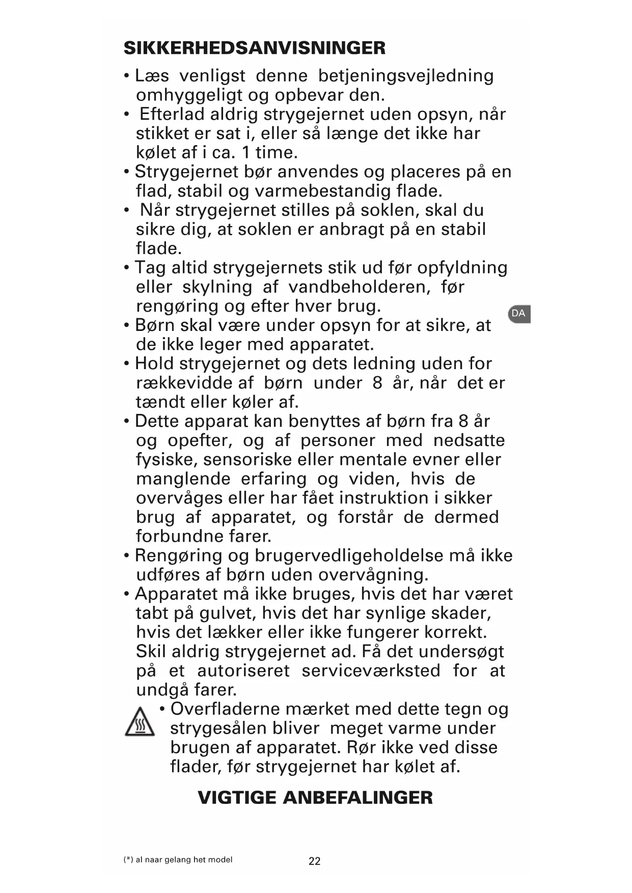 • Dette strygejern er kun beregnet til brug i en almindelig husholdning.