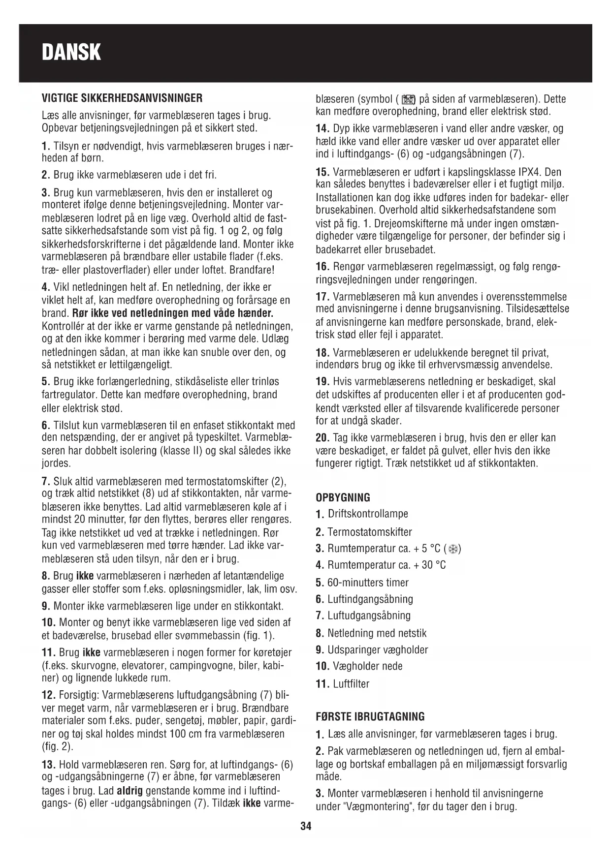 15. Varmeblæseren er udført i kapslingsklasse IPX4. Den
