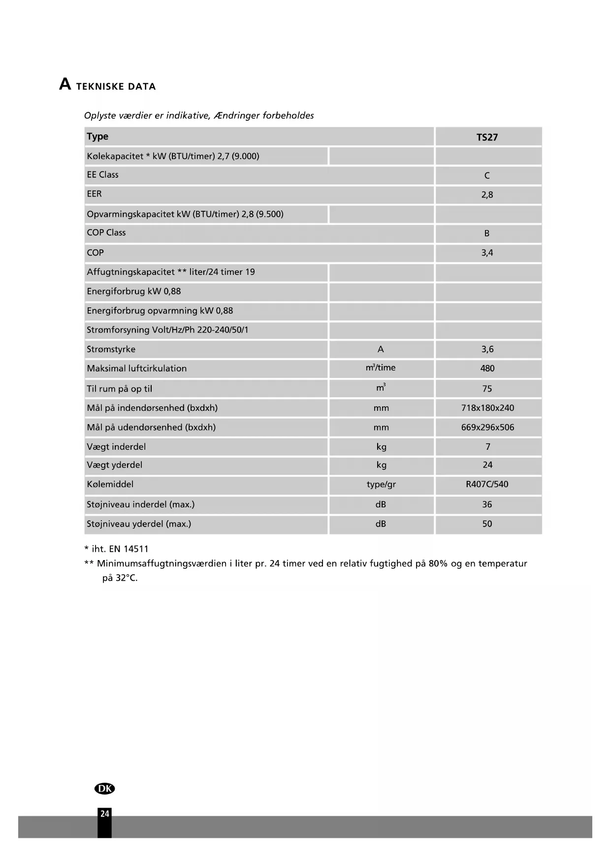 TS 27 - Aircondition ZIBRO - Gratis brugsanvisning og manual