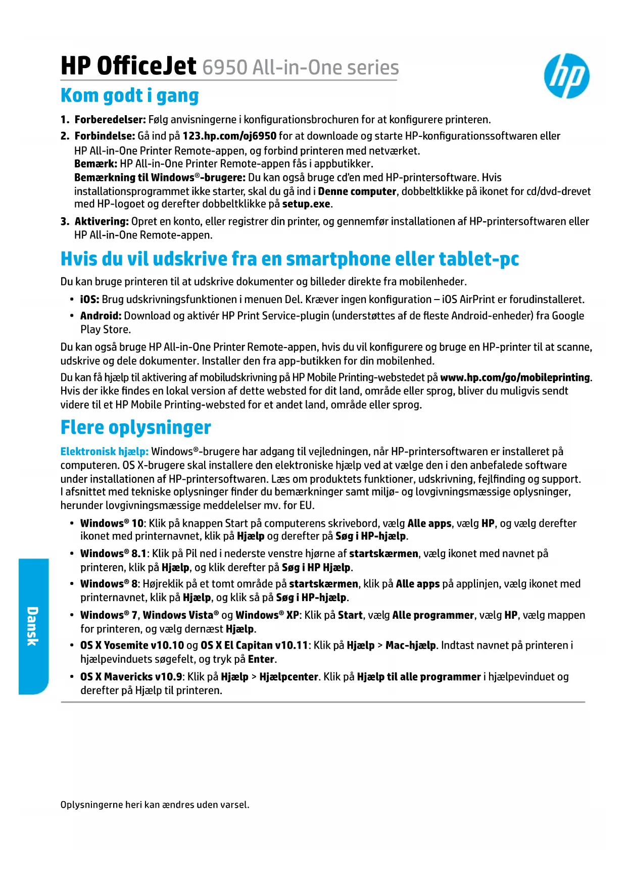 Download vejledningen til din Printer i PDF-format gratis! Find din vejledning OfficeJet 6951 - HP og tag din elektroniske enhed tilbage i hånden. På denne side er alle dokumenter nødvendige for brugen af din enhed offentliggjort. OfficeJet 6951 af mærket HP.
