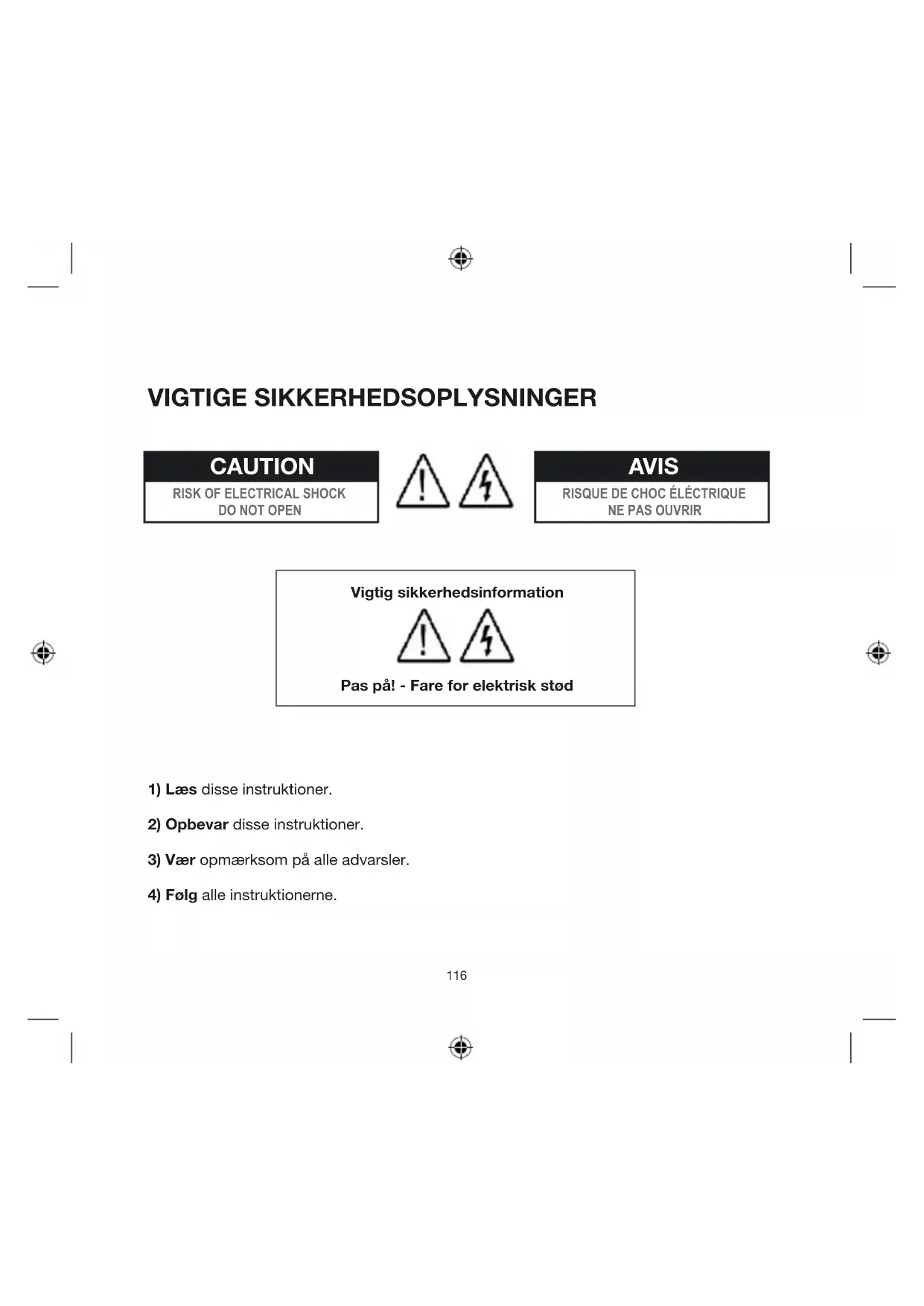 3) Vær opmaerkso m' alle advarsler.