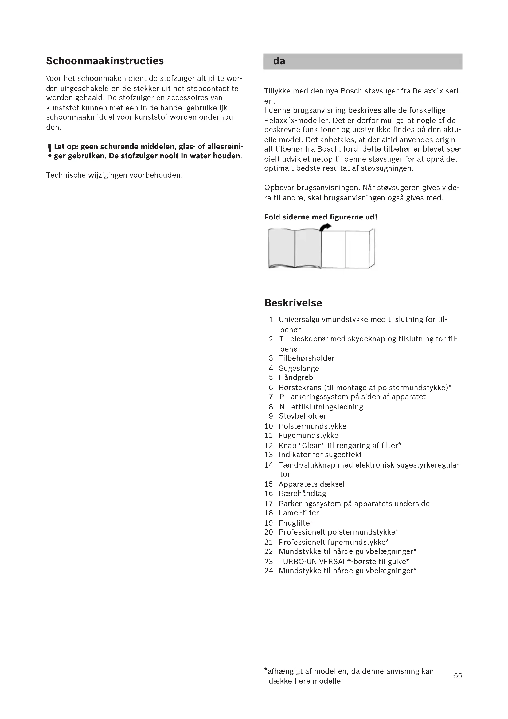 I denne brugsanvisning beskrives alle de forskellige Relaxx´x-modeller. Det er derfor muligt, at nogle af de beskrevne funktioner og udstyr ikke findes på den aktu- elle model. Det anbefales, at der altid anvendes origin- alt tilbehør fra Bosch, fordi dette tilbehør er blevet spe-