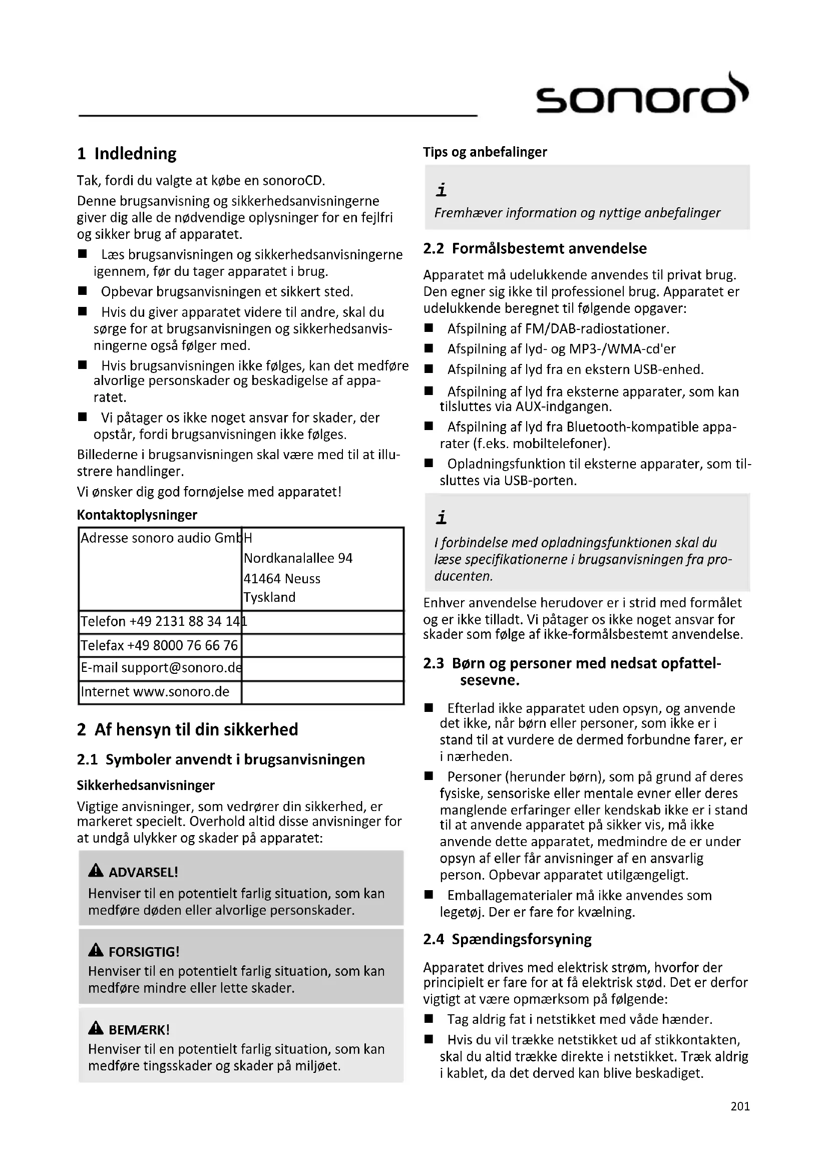 I tilfælde af reklamationer beder vi dig om at henvende dig til vores kundeservice. Kontaktoplysninger ( »Kontaktoplysninger« på side 201) eller på www.sonoro.de.
