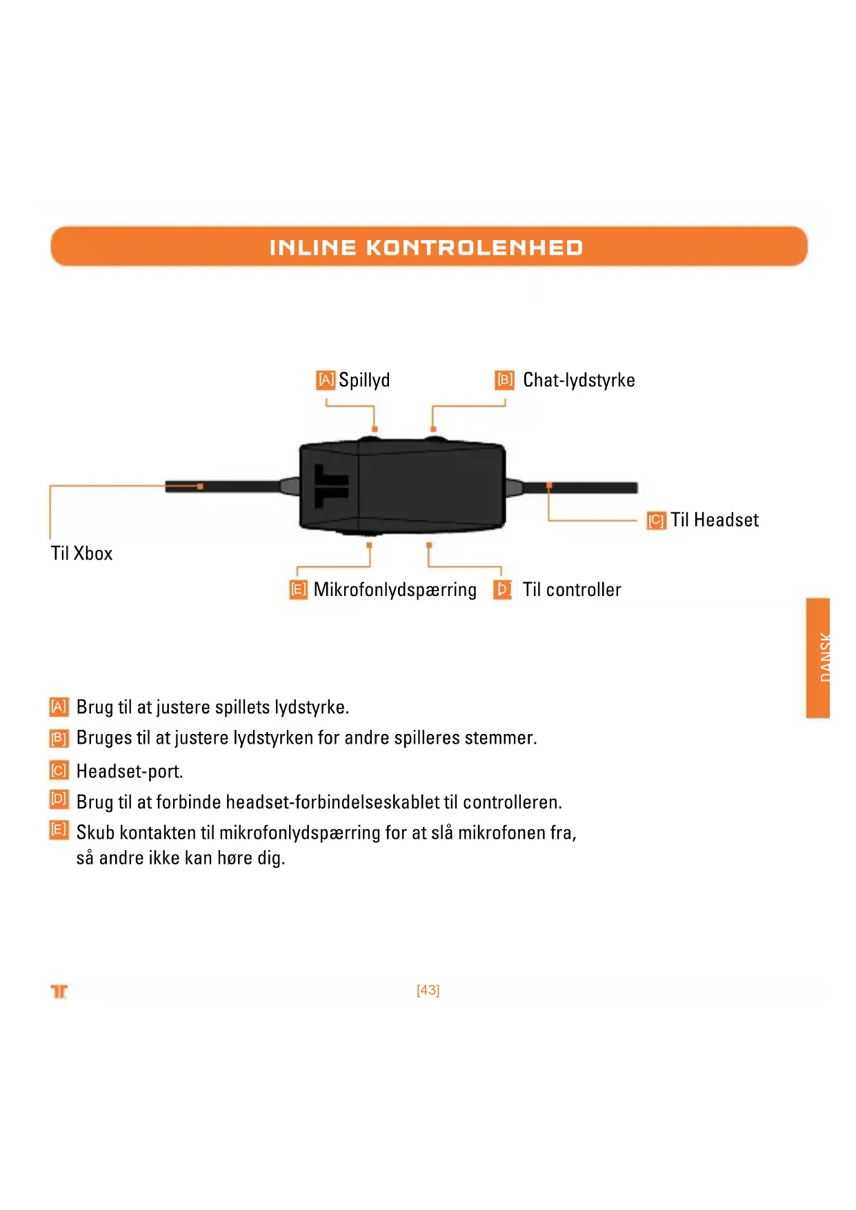Advarsel - hvis øretelefoner eller headsets bruges med høj lydstyrke over Længere perioder, er der risiko for permanent høreskade. Rotérbare ørepuder[43] DANSK InlIne kontrolenHeD