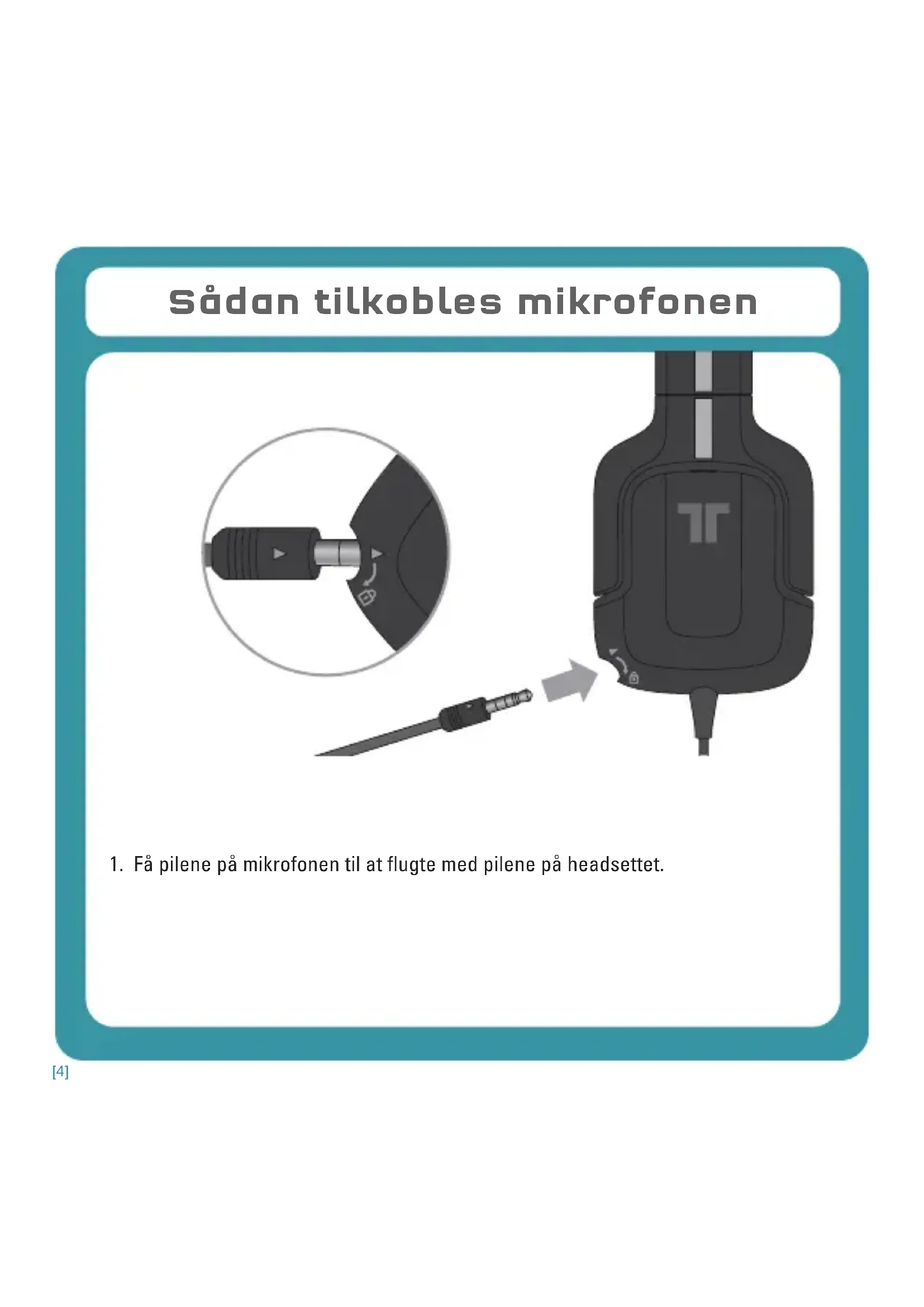 højttalermærkaten flugte med hullerne nederst på ørekoppen, og så skal højttalermærkaten vippes fremad, så magneterne holder den på plads. Højttalermærkater til udskiftning og specialfremstillede højttalermærkater kan fås på trittonaudio.com[10] Fejlfinding Mikrofonen virker ikke: