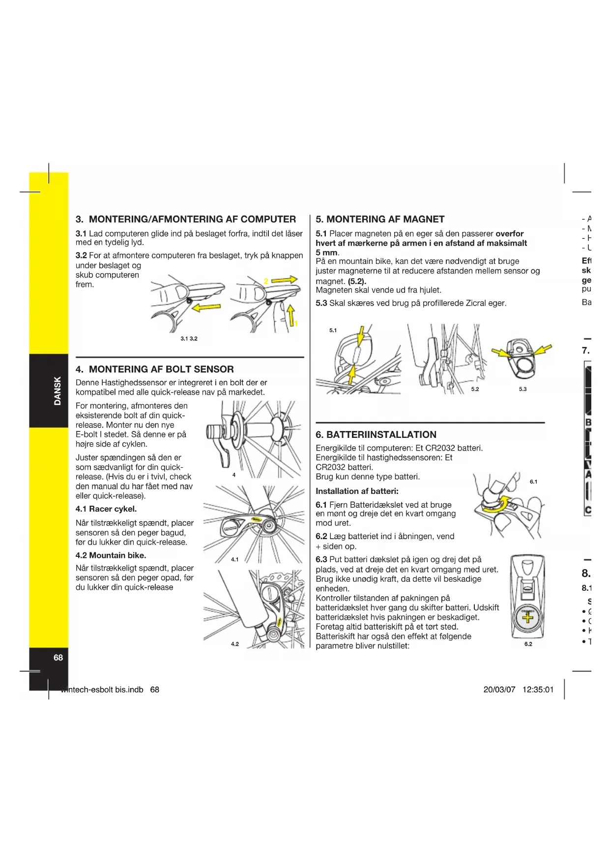 hvert af mærkerne på armen i en afstand af maksimalt 5 mm. På en mountain bike, kan det være nødvendigt at bruge juster magneterne til at reducere afstanden mellem sensor og magnet. (5.2). Magneten skal vende ud fra hjulet.