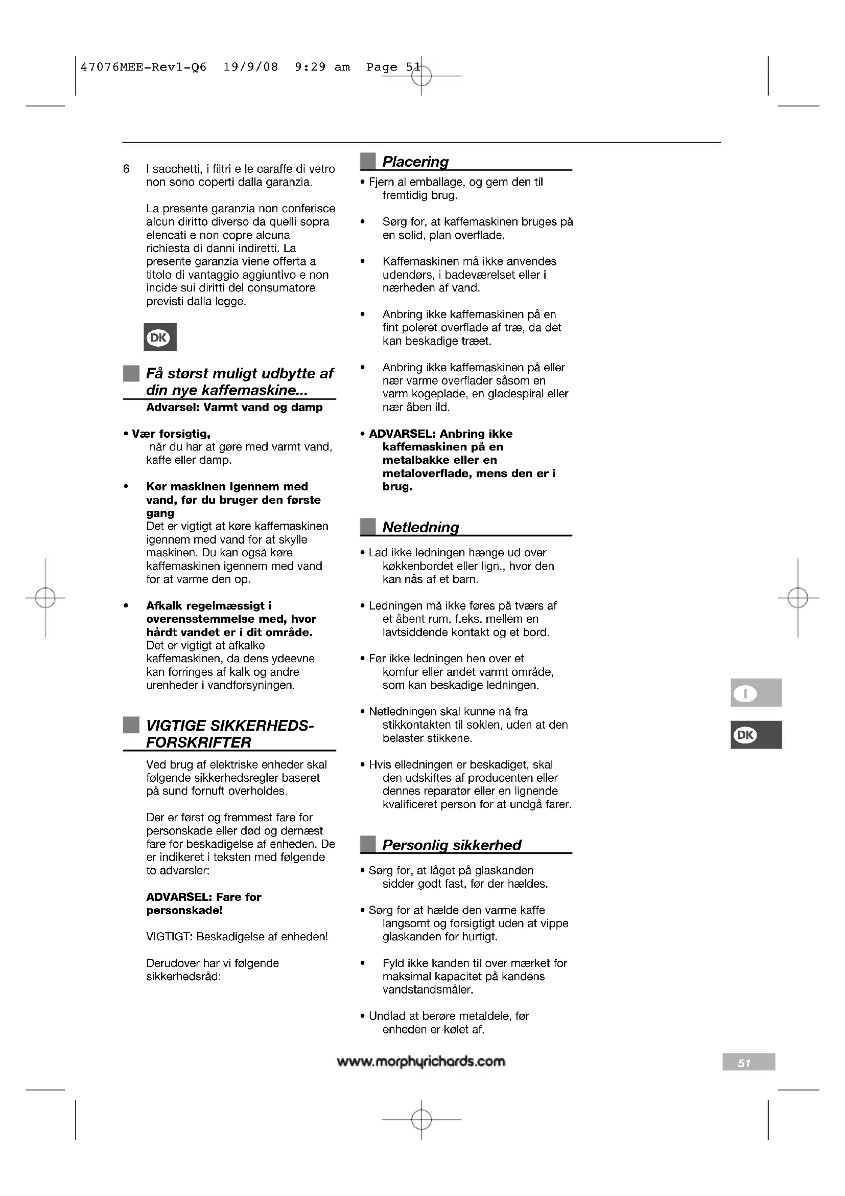 usholdningsbrug. 5 Morphy Richards er ikke ansvarlig