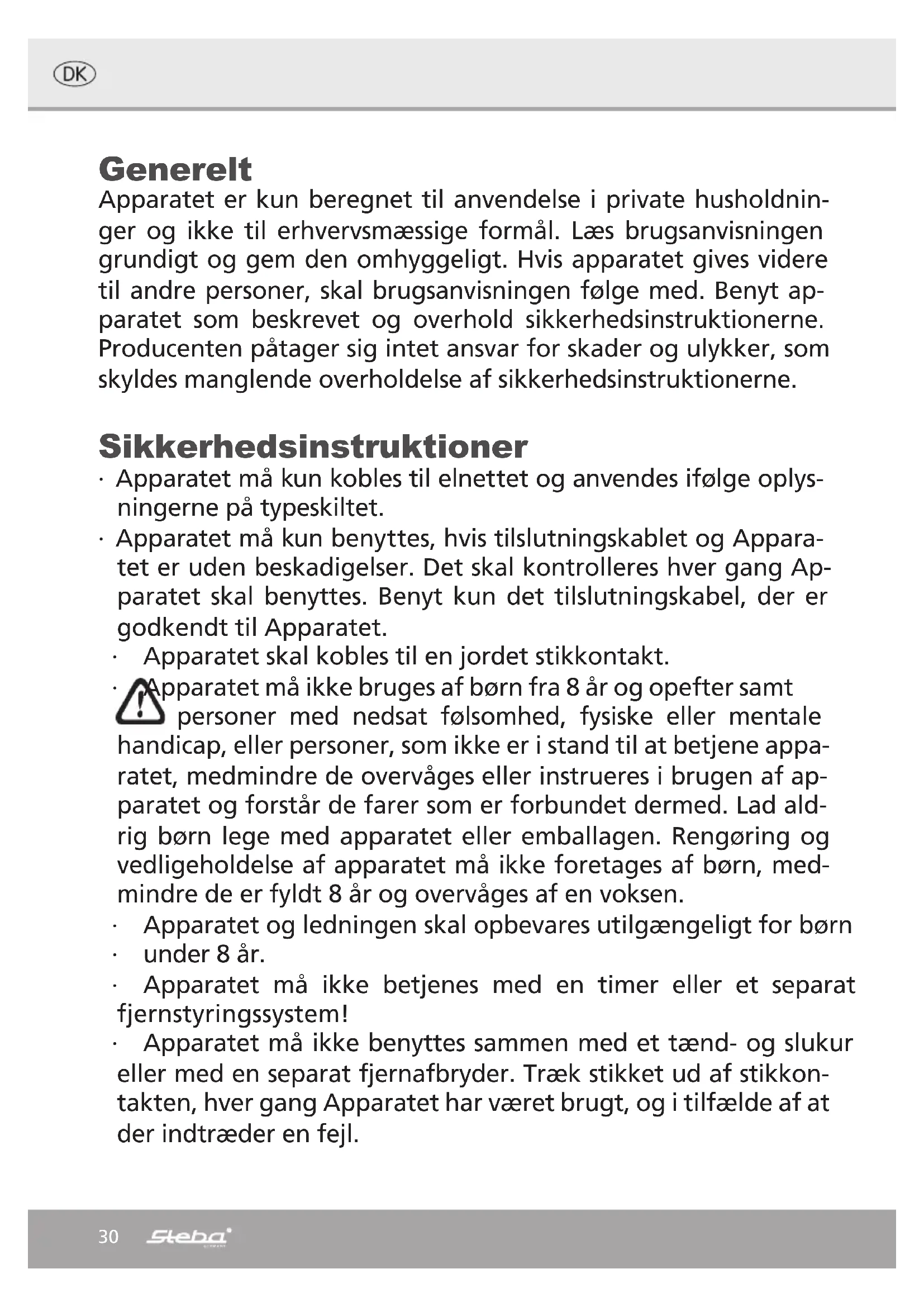 BRUGSANVISNING SG 16 STEBA