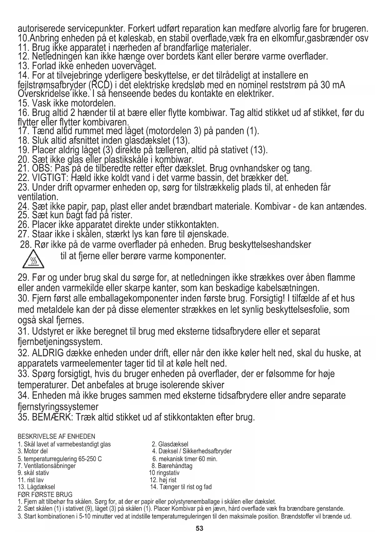 35. BEMÆRK: Træk altid stikket ud af stikkontakten efter brug.