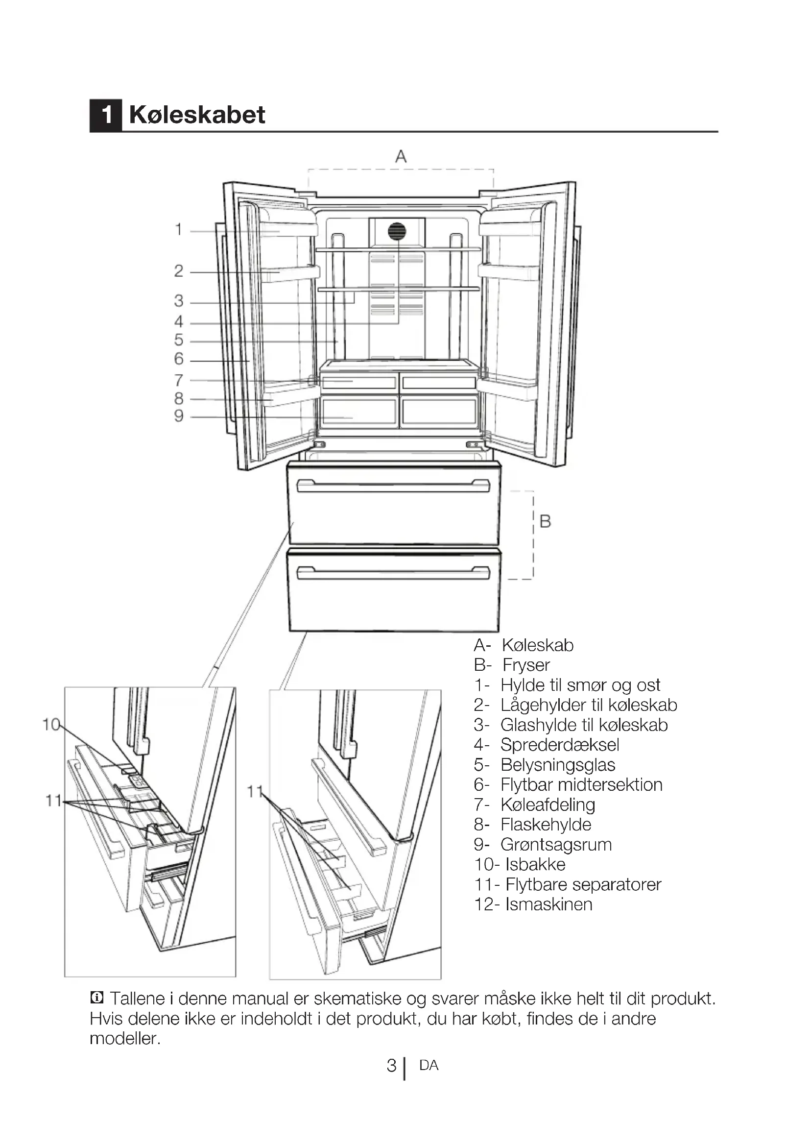 1 Køleskabet A- Køleskab B- Fryser